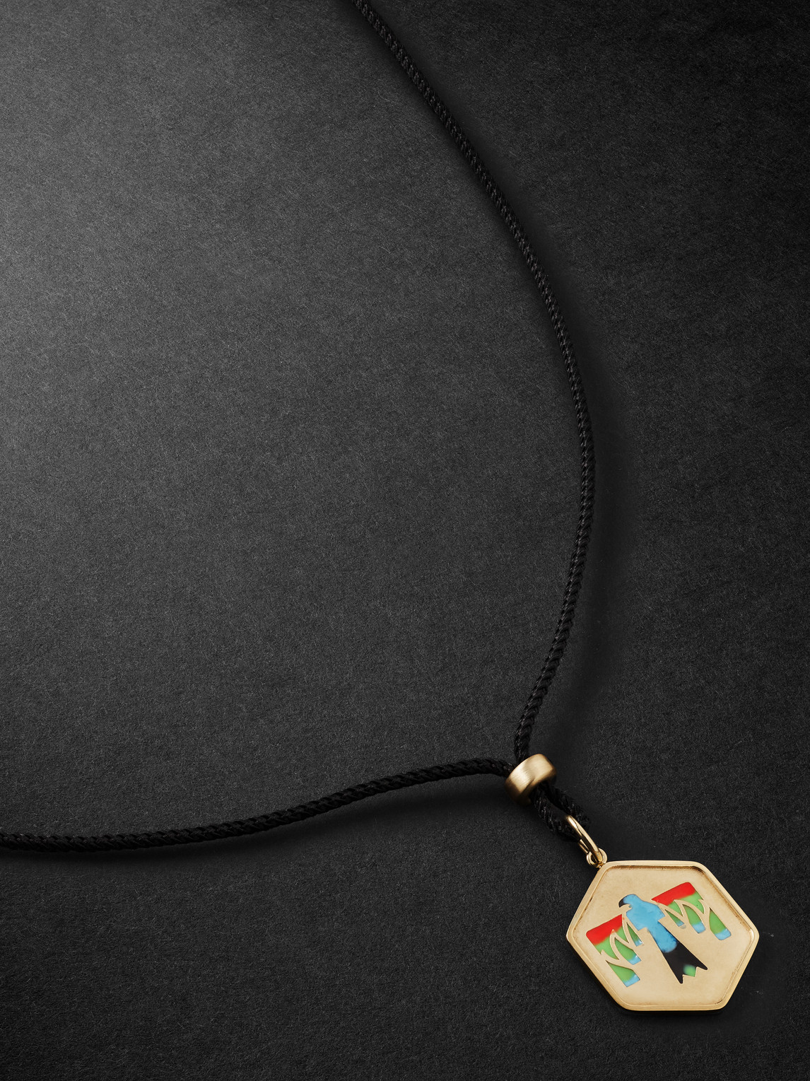 Thunderbird Gold Enamel and Cord Pendant Necklace