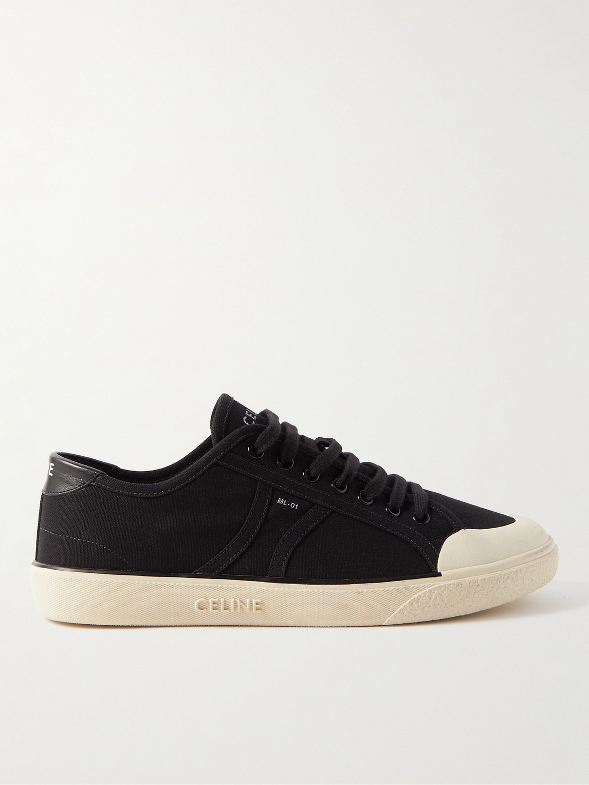 Logo-Print Leather-Trimmed Canvas Sneakers