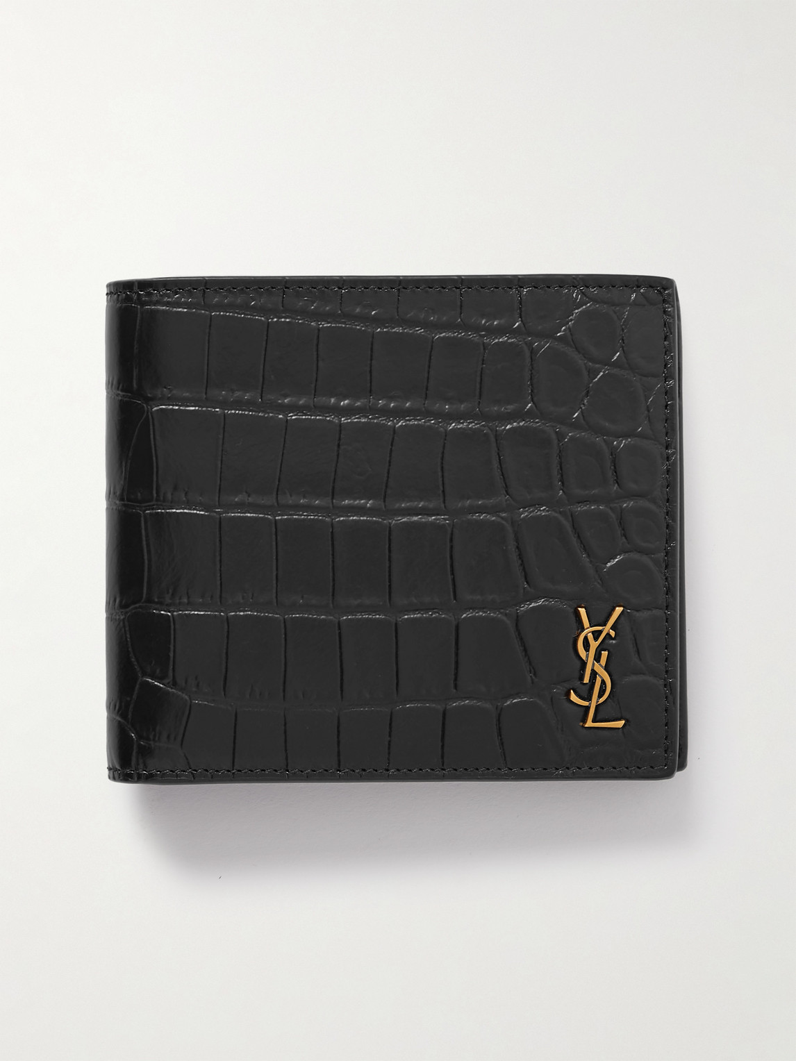 Logo-Appliquéd Croc-Effect Patent-Leather Billfold Wallet