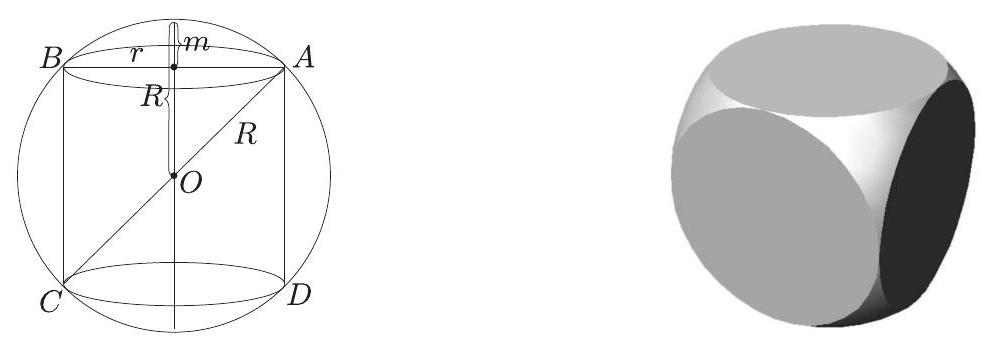 2. Suppose the axis $l$ is parallel to the line $OB_1$ (Fig.2). Then $OB_1$ is a generatrix of the cylinder. Let $A_2, B_2, C_2$, and $O_2$ be the projections of points $A, B, C$, and $O$ onto the line $l$, respectively, and $O_1$ be the center of the square $A_1B_1C_1D_1$. Then the point $A_2$ coincides with the point $C_2$, and since points $O$ and $B_1$ are equidistant from the axis of the cylinder, $B_1B_2 = OO_2 = R$ (where $R$ is the desired radius of the cylinder), the line $O_1C_2$ is perpendicular to the axis $l$ of the cylinder. If the lines $O_1C_2$ and $OB_1$ intersect at point $E$, then $O_1E \perp OB_1$. Denote $\angle OO_1E = \angle BOB_1 = \beta$. Then