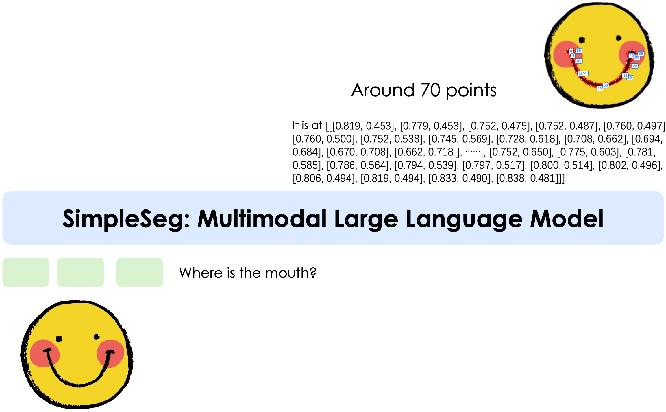 - Interpretable Output: The model generates explicit, human-readable coordinate sequences instead of dense pixel masks. This transparency simplifies debugging and makes the output directly usable for downstream applications like interactive editing or tool use.